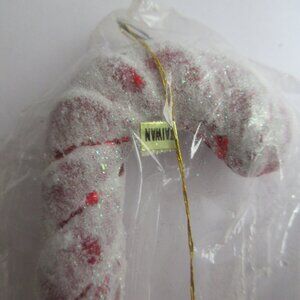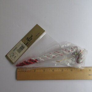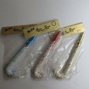 3 Blow Mold 8" Candy Cane Ornaments Red, Blue, Gold Glitter Golden Sleigh NIP