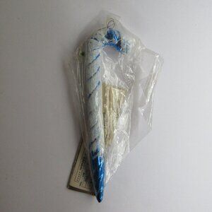 NEW in package, 7" red, blue and gold with white "frosted" glitter