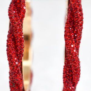 3" Boho Braid Twist Red Rhinestone Hoop Earrings