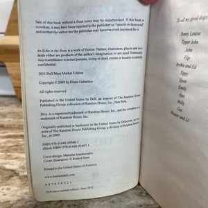 Second is "An Echo in the Bone" Print date June 2011 by Dell Mass Market Edition. 1149 pages. Slight moisture marks on first couple pages.