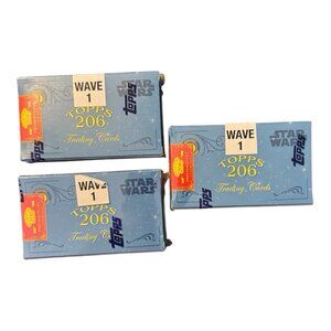 The product is a set of 3 factory sealed boxes of 2022 Topps Star Wars T206 Wave 1 trading cards. These exclusive boxes contain non-sport trading cards featuring characters and elements from the Star Wars franchise. Manufactured by Topps, these boxes are designed for collectors aged 4 and up, making them perfect for fans of the popular TV show and movie series. Each box offers a unique and exciting opportunity to collect and trade these highly sought-after cards.