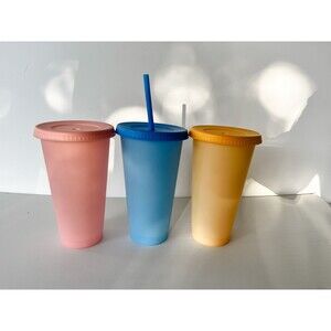 3 Buc-ee's Bucee's Tumbler 25oz Color Changing Cup Lid Straw Pink Blue Yellow
