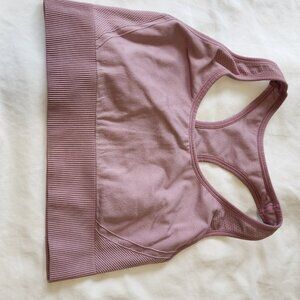 These bras are super comfortable and moisture wicking for working out and wash very well. They are in good but used condition, as pictured. Just note that the padded inserts have been removed.