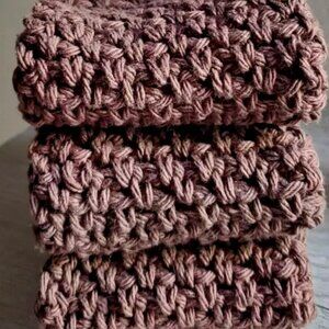 3 CROCHET DISHCLOTH WASHCLOTH 100% COTTON HANDMADE NEW DARK BROWN SET GIFT