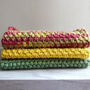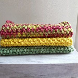 3 CROCHET DISHCLOTH WASHCLOTH 100% COTTON HANDMADE NEW Sage Green Yellow…