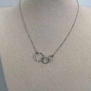 TAGS: three circle necklace, interlocking circle necklace, silver dainty necklace, symbolic jewelry, minimalist gift, layered necklace, stackable necklace, trio necklace, mother of three gift, 30th birthday gift, gift for friend, soul sister jewelry, bff necklace, geometric jewelry