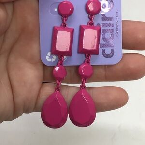 - (1) pair of boho pink retro 80’s style dangle earrings with post back. Approx 3” long.