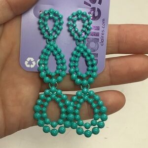 - (1) pair of turquoise dangle post back earrings. Approx 3” long.