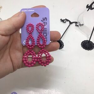 - (1) pair of pink retro 80’s style dangle post back earrings. Approx 3” long.