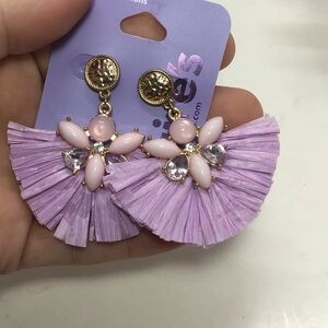 - (1) pair of lavender fanned rhinestone dangle post back earrings. Approx 2” long.