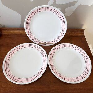 3 Corelle Bayside Dots Salad Plates Red 8.5" Corning USA Break-Resistant Retired
