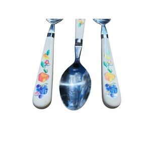 3 Corelle by Coring Fruit Basket Stainless Tablespoons Flatware Plastic MCM 7.5"