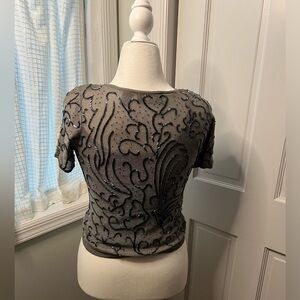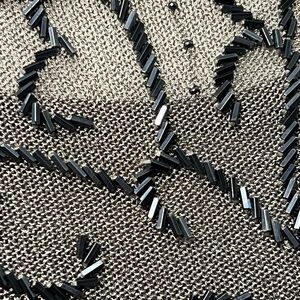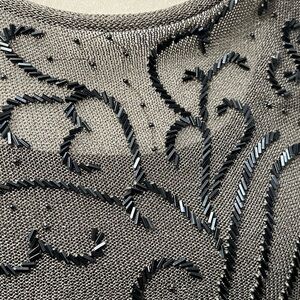 DESCRIPTION: Beautiful embellished knit top. Only 1 call out, there is one bead that is slightly loose. Please see photos provided: one being a close up and another from a distance to see the overall location.