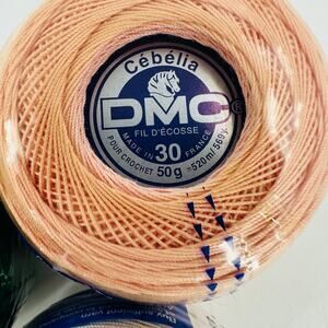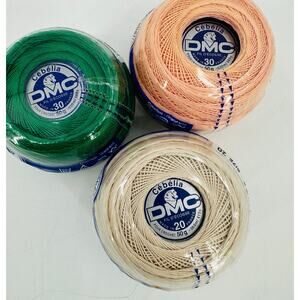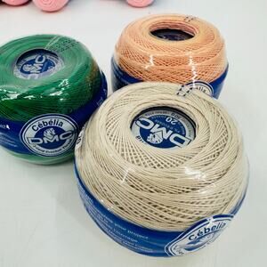 3 DMC Cebelia Crochet 167GA 100% Mercerized Cotton Size 30 20 Cream Green Peach