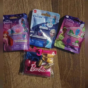 3 sets of Disney princesses fashion accessories. 1 pk of Ken Shoes..