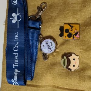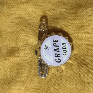 The grape soda pin shows signs of usage. The Mickey pin is a hidden Mickey pin.