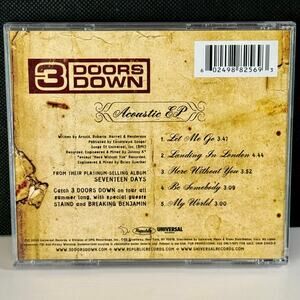 Description: Rare 2005 promotional 3 Doors Down – Acoustic EP CD, released by Republic/Universal Records (UNIR 21463-2). This collectible acoustic release features 5 stripped-down versions of songs from the band’s platinum-selling album Seventeen Days, including “Let Me Go,” “Here Without You,” and “Landing in London.” A must-have for fans of 3 Doors Down, Staind, Breaking Benjamin, and early 2000s post-grunge rock.
