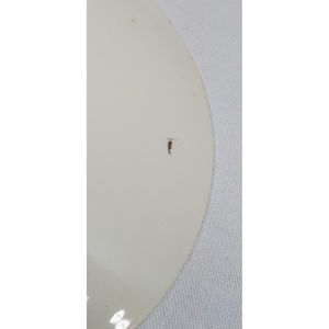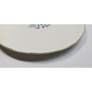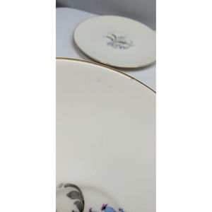 Some utensil marks, some fading on blue bells consistent with age, no chips or cracks, one small nick on back of one plate.