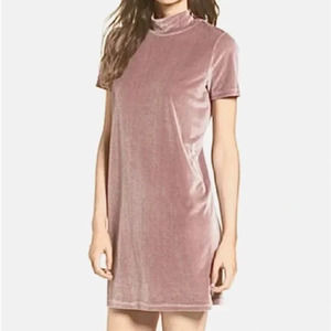 Madewell Velvet Mockneck Mini Shift Dress In Frosty Mauve size small. Short sleeves, Loose fit, Polyester, Elastane