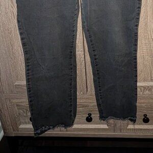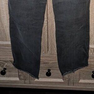 Have a cut off frayed intentional hem, front is slightly shorter than the back and front has a slightly angled cut