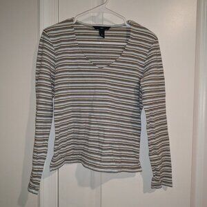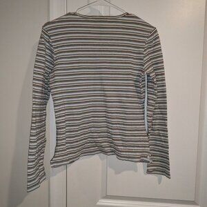 *3 FOR $9* GAP Stretch Long Sleeve V-Neck Plunge Striped top Shirt Tee Blouse M