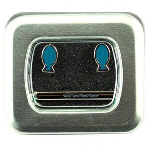 This lovely box set includes a pair of iridescent blue fish cufflinks and wave tie bar. This tie clip and cufflinks set is presented in luxury silver metal gift box.