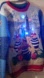 12 days of Christmas sweater with 3 french hens sipping wine under the eiffel tower. Playful and unique design. win the ugly christmas sweater contest . sweater lights up. has on and off switch