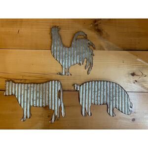 3 Farmhouse Galvanized Metal Farm Animal Cut outs wall decor. Chicken pig cow