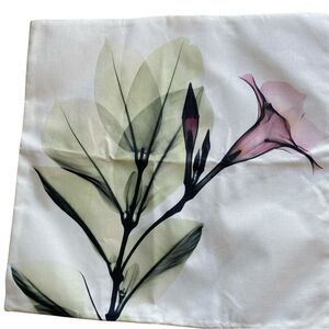 Set of three floral print pillow covers. Features pink, purple, and green designs on a white background.
