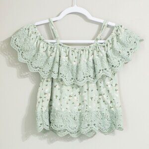 No Boundaries Green Ruffled Cold Shoulder Cropped Top, size large (11-13)