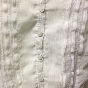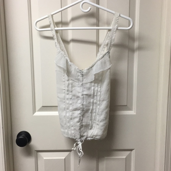 Super cute tank top from Abercrombie. Straps cross in the back. Barely noticeable stain between the middle buttons. Shown on the last picture