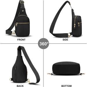 3 For $15 black Sling Crossbody Bag w/ Gold Zippers – Minimalist & Lightweight