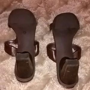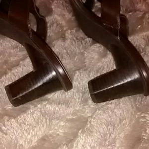 Dark brown sandals, wore once, heels are a little scuffed from the closet-see 3rd picture, otherwise in great condition!