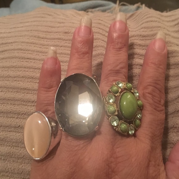 Three very fun oval-shaped rings two adjustable one not. Great to add a little bling to your fingers.