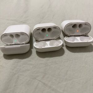 Used all working no EarPods included 3 charging cases signs of wear see pictures as a part of the description