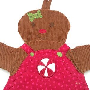 3 Gingerbread Girl Oven Mitts Holiday Baking Cooking Embroidered Corduroy Cute