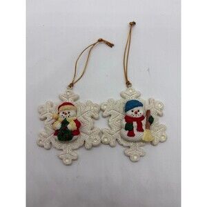 * Lot of 2 Ornaments Includes two festive snowmen holding Christmas ornaments.