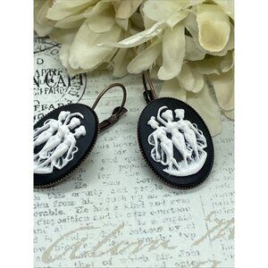 3 Graces Muse Muses Dancer Black White Rose Gold Setting Earrings Cameo Birthday