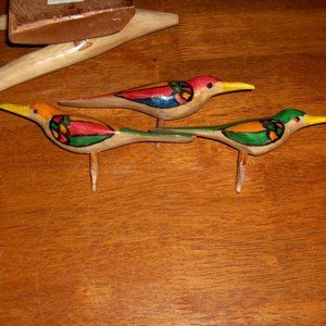 3 Handcrafted Birds with stand, Measure 6" Long, Stand has 5 holes, to position birds. Jamaica Thanks for Bidding!