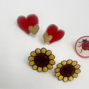 3 Handmade Vintage Appliqué Earrings - Heart Sunflower Ladybug