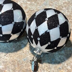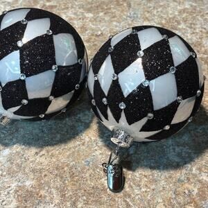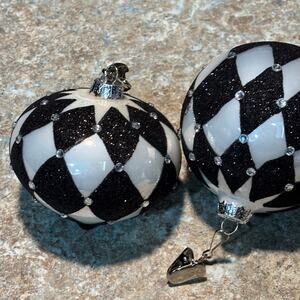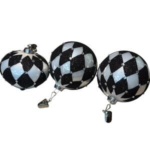 3 Harlequin Black & White Glitter Shimmer Diamond Clip Christmas Tree Ornaments