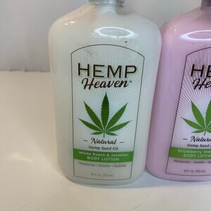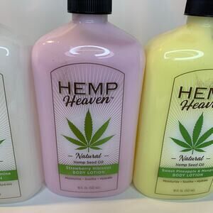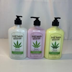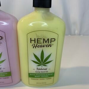 3 Hemp Heaven Full Size Body Lotions White Peach And Jasmine Strawberry Hibiscus Sweet Pineapple And Mango