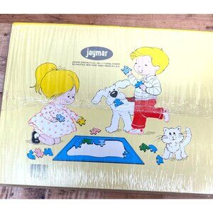 This set of Jaymar Stay-In-Tray Inlaid Plaque Picture Puzzles offers durable, thick pieces designed for children ages 3-7. Ideal for developing fine motor skills and problem-solving.