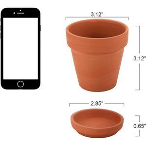 🧿🌼DIMENSIONS - The size of the terracotta pot is 3 inches high, the diameter of the opening is 3 inches; the saucer is 3 inches wide and 0.8 inch high. The succulent kit is also relatively small in size and is ideal for growing mini plants.
