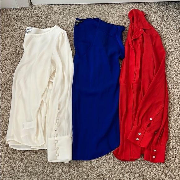 3 Item Polyester Career Blouse Shirt Bundle - J. Crew & Express - Sz Small / 2