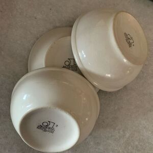 3 Jackson China Heavy White 5 3/4” Bowls. Some wear, see photos. No chips or cracks.