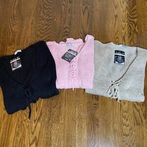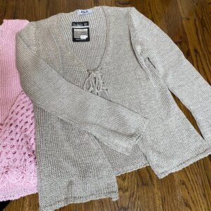 (3) John P. cardigan sweater & pullover L womens NWT Greece tan pink black
