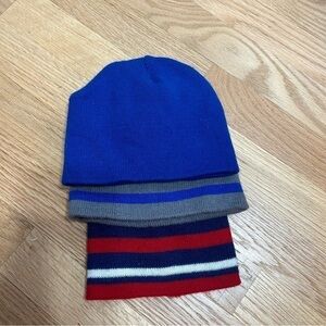 3 Knit Hat Bundle Baby Toddler Boy Blue Red Striped Gray