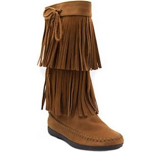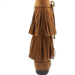 Double fringe magnifies the magnificent appeal of these tall boots! Crafted with a fashion-savvy profile you're sure to prefer, this tailored pair will keep all eyes on you with every step.