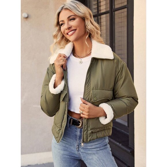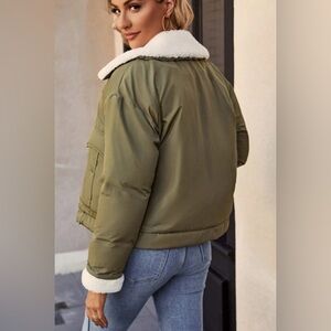 3 LEFT 🖤 olive green puffer jacket shearling collared lined quilted jacket